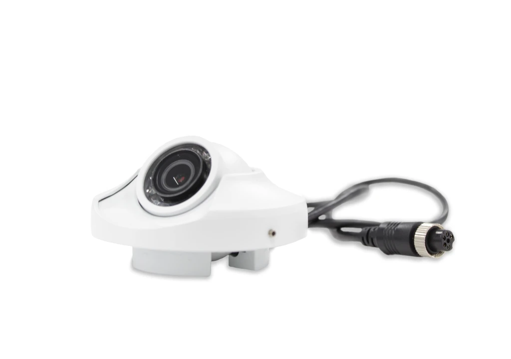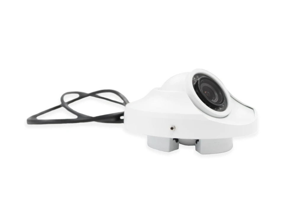 Камера устанавливается врезным способом: в обшивке транспортного средства выполняется отверстие, после чего устройство фиксируется с обратной стороны. Такая конструкция обеспечивает минимальное выступание над поверхностью и защиту от вандализма. Подключение осуществляется через надежный 4-пиновый авиационный разъем с фиксирующей гайкой, устойчивый к вибрациям. Питание подается от бортовой сети 12 В (диапазон 9–15 В), видеосигнал передается по стандарту AHD. Благодаря классу защиты IP68 и широкому температурному диапазону камера сохраняет работоспособность в самых сложных условиях эксплуатации.
